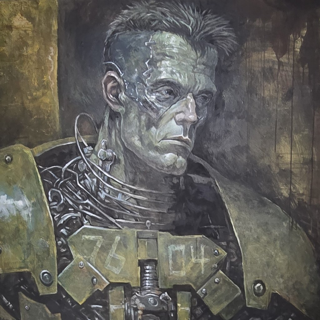 (Pictured: “Soldier of Creation Unit 76-04” is a collaborative acrylic painting done by Martin and his son Koen working under the name “Franko”. Photo by Beth Stewart.)